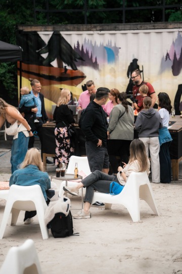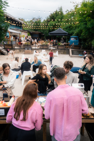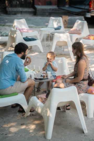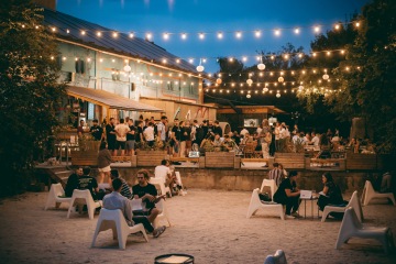 Přední zahrádka je ideálním místem pro větší akce. Část zahrady se nachází na zpevněném povrchu a část na pískové pláži. Venkovní prostor je vhodný pro organizaci privátní akce, party, divadelního představení, koncertu či jakéhokoliv tebou organizovaného eventu. Vystavit si tu můžeš například i auto.