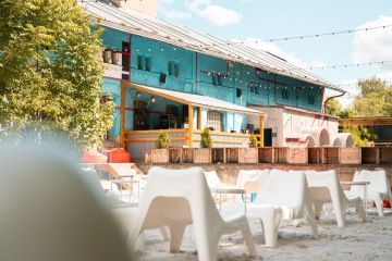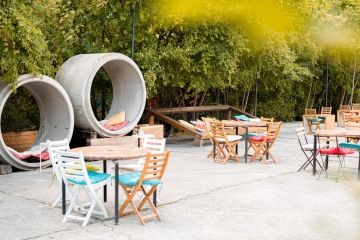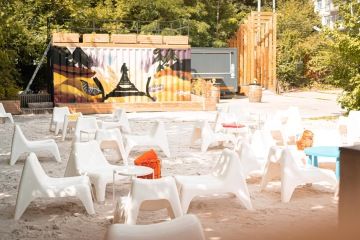 Přední zahrádka je ideálním místem pro větší akce. Část zahrady se nachází na zpevněném povrchu a část na pískové pláži, kde probíhá také letní kino. Venkovní prostor je vhodný pro organizaci privátního promítání, party, divadelního představení, koncertu či jakéhokoliv vámi organizovaného eventu.