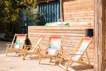 Letní posezení ve stínu stromů. Vlastní bar a bazén na ochlazení v teplých měsících nebo na otužování